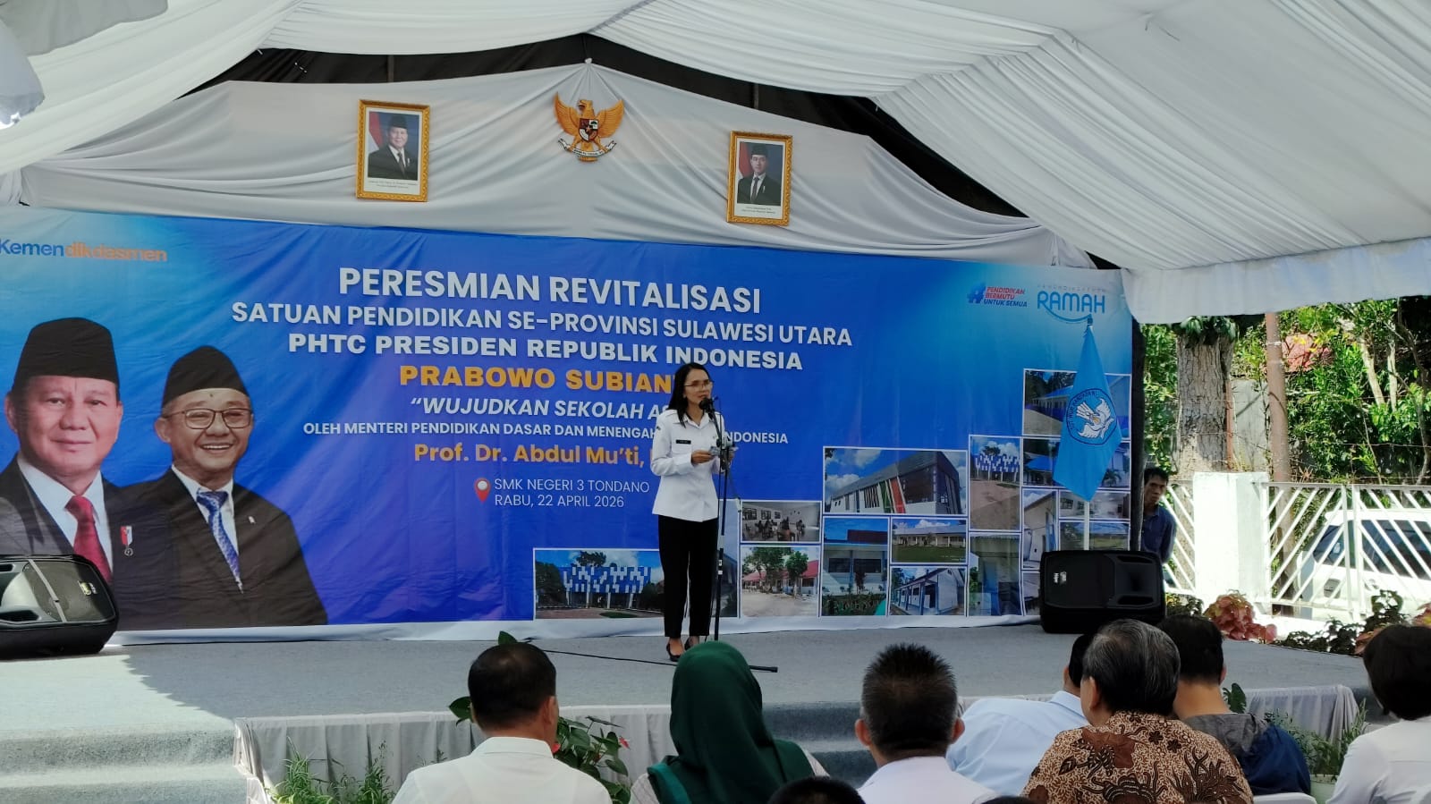 MINAHASA, PALAKAT.id — Menteri Pendidikan Dasar dan Menengah (Mendikdasmen) RI Prof. Dr. Abdul Mu’ti, M.Ed. meresmikan revitalisasi satuan pendidikan se-Provinsi Sulawesi Utara Program Hasil Terbaik Cepat (PHTC) Presiden Prabowo Subianto dengan tema ‘Wujudkan Sekolah Asri’ di SMK Negeri 3 Tondan, Rabu (22/4/2026).